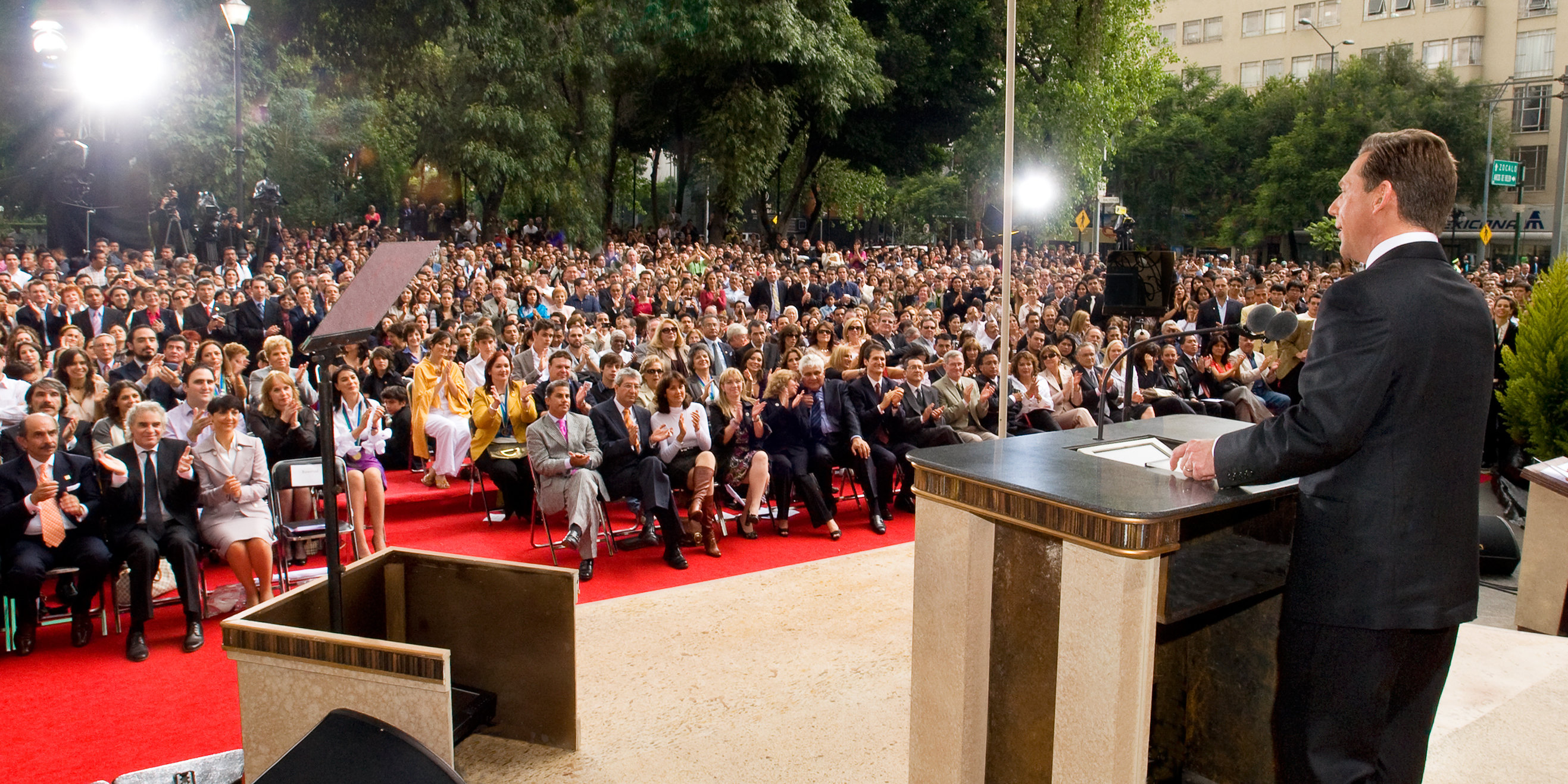 Al cierre de la ceremonia de dedicatoria, el Sr. Miscavige dijo a la multitud: “Los invito cordialmente a que crucen las puertas de entrada y que considen lo que les espera en el interior. Porque aquí no solo yace todo aquello a lo que me referí como un México sin drogas, sin crimen, alfabetizado y próspero, sino todo lo demás que enciende la chispa de esa revolución del espíritu por la cual México ha estado esperando durante mucho tiempo”.